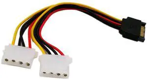 Vszerda 6 Inch Sata 15-Pin Male to Dual 4 Pin Molex Lp4 Female IDE Hard Drive Power Y-Adapter Converter Cable,Male to Female for 12V/5V IDE HDD DVD