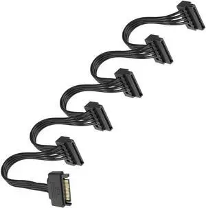 SATA Power Splitter Cable 15 Pin SATA to 5 x 15 Pin SATA Power Supply Cable Extension Cable 15 Pin SATA Male to 5 x Serial SATA Female Power Cord for HDD SSD Hard Disk Drive