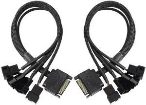 BUCIER SATA to 3 Pin 4 Pin Fan Adapter,15pin SATA to 4 x 3 pin / 4 Pin 12V PC Case Fan Splitter Extension Power Cable Adapter-28cm-2pcs