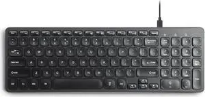 Perixx PERIBOARD-215B US, Wired Keyboard - Ultra Slim Scissor Keys - 2 Built-in USB-A & USB-C Ports - Detachable Cable - Black - US English