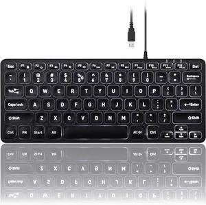 Perixx PERIBOARD-332 Wired Backlit USB Keyboard - Mini 11.22x4.57x0.83 Inches - Slim Scissor Keys with Big Font - White Illuminated LED - US English