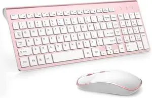 cimetech Pink Wireless Keyboard and Mouse Combo, 2.4G Full Size Compact Keyboard and Silent Wireless Mouse, Ultra-Thin Sleek Design for Windows, Computer, Desktop, PC, MacBook, Laptop