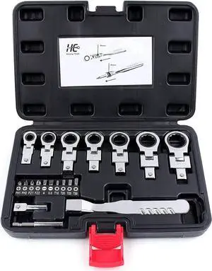 Zhushan New Type 20PCS Flex Head Ratchet Wrench Set, Metric Rotatable Combination Wrench with Interchangeable Variable Diameter Heads (8mm-19mm) Metric
