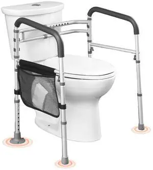 Toilet Safety Rail, Bathroom Toilet Seat Frame, Adjustable Width & Height Fit Most Toilets, Supports 300lbs, Toilet Handles Grab Bars with Padded Armrests for Handicap, Disabled, Seniors