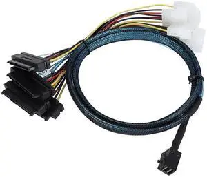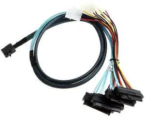 Mini SAS HD SFF-8643 to 4X SAS SFF-8482 Server Cable 12Gbps Server Internal High-Speed Cable | 30AWG | with Power Cable (19.68, Inches)
