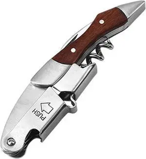 Knife Sharpener Can Opener Stainless Steel Corkscrew Leather Case Bottle Opener Wine Opener Professional (Color : 02 Wooden Handle) (02 Wooden Handle)