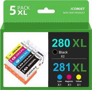PGI-280 XXL/CLI-281XXL Compatible Ink Cartridges Replacement for Canon 280 281 Ink Cartridges PGI-280XXL CLI-281XXL Ink Canon PIXMA TR8520 TR8620 TS6120 TS6320 TS8220 TS8320 TS9120 Printer (5 Pack)