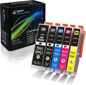 Arthur Imaging Compatible Canon Ink cartridges 280 and 281 Replacement PGI-280XXL CLI-281XXL PGI 280 XXL CLI 281 XXL PIXMA TR7520 TR8520 TS6120 TS6220 TS8220 TS9120 TS9520 TS9521C Printer (5 Pack)