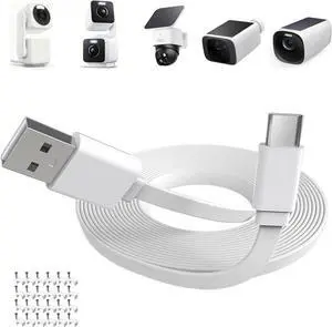 50ft/15m Charging Cable for WYZE Duo Cam Pan,WYZE Cam Pan v4,eufy SoloCam S340/S220, C210,eufyCam 3/S330, 3C/S300,Flat Type C Cable,USB C Extension Cord for Continuous Your Camera Power Supply