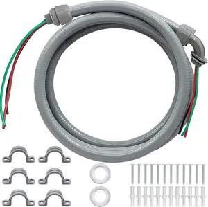 3/4 Inch Liquid-Tight Conduit and Connector Kit - 6 FT Non Metallic Liquid Tight Electrical Conduit with 8 Gauge Electrical Wires and 2 Straight & 1 Angle Fittings