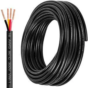 16 Gauge Wire, 4 Conductors, 16AWG Stranded PVC Electrical Wire, Oxygen-Free Copper Wire, 50FT 4 Core Pure Copper Flexible Wire for Car LED Lamp Lighting Strips (50FT, 16AWG-4C)