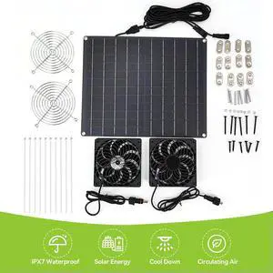 15W 12V Solar Fans IP65 Waterproof Solar Panel Exhaust Fans Regulate Temperature Solar Ventilation Fans for Outside Inside Shed