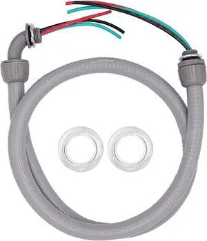 4FT 1/2-Inch Electrical AC Whip Kit,Nonmetallic Liquid Tight Flexible Electrical Conduit,6FT of Connecting Wires 3-Conductor 10-Gauge Wires with Straight/90 Degree Fittings