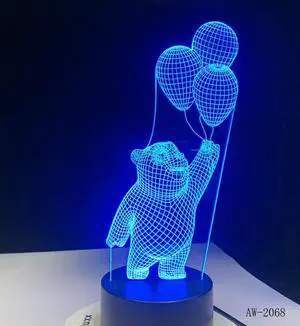 Weastlinks Cartoon Cute Heart Bear Shape Acrylic LED Lamp 3D Baby Night Light Sleeping Lighting 7 Colors with Touch and Remote Control