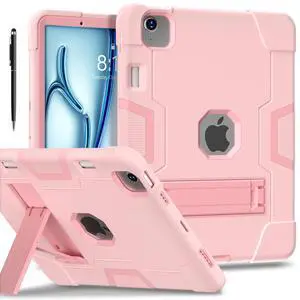 WERLEO Case for iPad Air 11 inch M3 2025 / iPad Air 11 M2 2024 with Pencil Holder Heavy Duty Rugged Protective Cover with Kickstand Stylus Pen Rose Gold