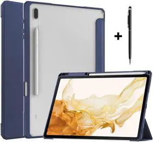 BONAEVER Case For Samsung Galaxy Tab S8 Plus 12.4 2022 SM-X800/X806 / Tab S7 FE 2021 / Tab S7 Plus 2020 12.4 inch with S Pen Holder Stylus Pen Transparent Back Smart Stand Cover with Auto Wake/Sleep
