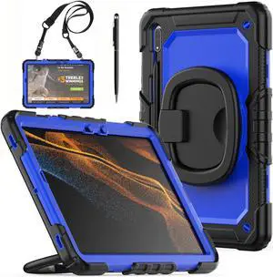 BONAEVER Case for Samsung Galaxy Tab S8 11 inch 2022 / S7 11 Inch 2020 Protective Cover with Screen Protector Pen Holder Hand/Shoulder Strap Stylus Pen Blue
