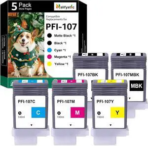 PFI 107 PFI-107 Ink Cartridge Compatible with PFI107 PFI-107MBK PFI-107BK PFI-107C PFI-107M PFI-107Y Ink Set for IPF670 IPF680 IPF685 IPF770 IPF780 IPF785 Printers (5 Pack)