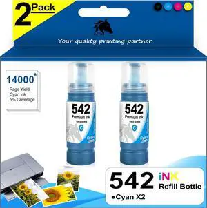 542 Cyan Ink Refill Bottles Ultra-high Capacity (T542220-S) for ET-5150 ET-5170 ET-5180 ET-5800 ET-5850 ET-5880 ET-16600 ET-16650 ST-C8000 ST-C8090 (2-Pack T542 C Pigment Ink)