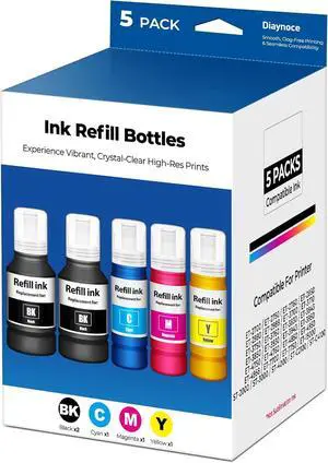 Compatible for T502 Ink Refill Bottles Eco Tank ET-2850 ET-3850 ET-4850 ET-15000 Replacement for E-pson T502 Ink (5 Bottles) for ET 2850 ET 3850 ET15000 ET4850 ET-2760 ET-3830 ET3843 ET-3760 ET2750
