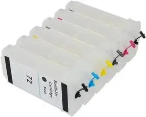 6 Colors Refillable Ink Cartridge with Chip Works with 72 for DesignJet T610 T770 T790 T1100 T1120 T1200 T1300 T2300 Printer Models