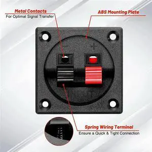 Kalevel® 2pcs DIY Home Car Stereo 2-Way Speaker Box Terminal Round Square Spring Cup Connector Binding Post Banana Jack and Plugs Subwoofer Plugs 80x80mm (Black)