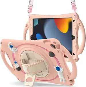 Case for Galaxy Tab S9/ S9 FE 5G Tablet 2023 with Screen Protector Pencil Holder [360 Rotating Hand Strap] &Stand, Drop-Proof Case for Galaxy Tab S9 FE 10.9''/ S9 11'', Beige+Pink