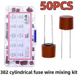 50PCS 10values * 5PCS 382 cylindrical fuse wire mixing kit 0.5A 1A 1.25A 2A 3.15A 4A 5A 6.3A 8A 10A