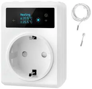 Tuya Thermostat Outlet Plug 16A Programmable Countdown Socket For Heating & Cooling With Temperature Sensor EU Plug