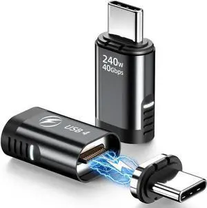 DuHeSin USB C Magnetic Adapter 240w, (2 Pack) 90 Degree Magnetic USB C Adapter 24 Pin with PD Fast Charging USB4 40Gbps 8K 60Hz for Thunderbolt 3/4, MacBook Pro/Air and More Type C Devices