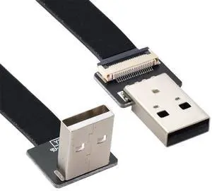 Vszerda 2.0M Down Angled USB 2.0 Type-A Male to Type-A Male Data Flat Slim FPC Cable 90 Degree for FPV & Disk & Scanner & Printer