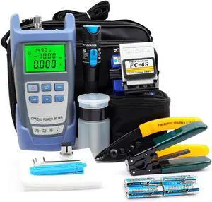 FTTH Fiber Optic Cold Connection Assembly Termination Tools Kit Bag with Visual Fault Locator Fiber Cleaver SC FC Connector Optical Power Meter Finder Cable Tester Stripper Tool Dust Free Paper