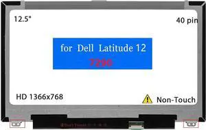 12.5" Screen Replacement for Dell Latitude 12 7290 LCD Display Panel 40 pin (HD 1366x768 Non-Touch)