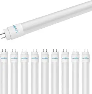 T8 LED Tube Light 4 Foot 18W, 36W Equivalent 2525LM, Glass Tube with Film Coating, Ballast Bypass Retrofit, Cool White 6000K, Frosted Cover Shop Lights for Garage Warehouse Offices 10-Pack