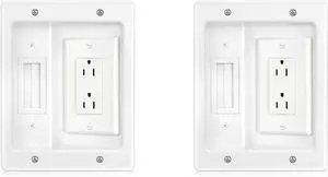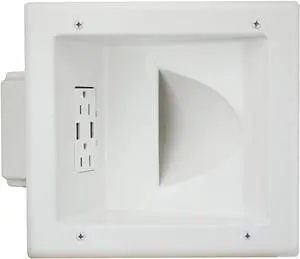 Data COMM Electronics 45-0231-WH USB Recessed Media Outlet Box, in-Wall Cable Management, Duplex Receptacle,4.0 Amp Dual USB Ports, Large Cable Pass-Through, Design for Thin Mounts & TV, White