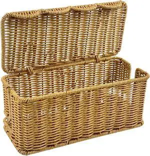 iXTRA 2-Pack Cable Management Box Set, Handwoven Rattan Cord Organizer, Decorative Cord Hider with Lid, Large Cable Organizer for Desk, TV Wires,Power Strips & Cords Natural