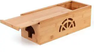 ZhiYo Wood Cable Management Box, Large Cord Organizer Box for Power Strip, Extension Cord Hider for Office, Desk Cable Storage Box for Wire Management, Floor Outlet Hider, 14.2" L × 6.7" W × 6.3" H