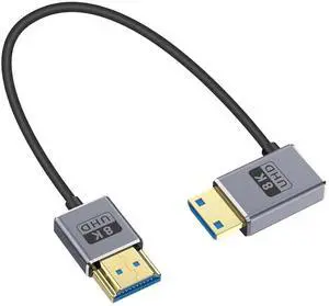 BUCIER 1ft 8K@60Hz HDMI Cable, OD 2.5mm Ultra-Thin HDMI 2.1 Version UHD Cord, 48Gbps HDMI Upward Angle Male to Straight Male Coaxial Cable for GH5S, PS5, Xbox One, HDTV, Dynamic HDR,eARC