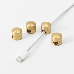 BRIGHTTIA Cable Clips - Premium Brass Cord Management for Home, Office & Car - Multipurpose Wire Holder Organizer - Sleek & Durable Design - Ideal Gift for Men, Women & Students - 4-Pack (Matte Brass)
