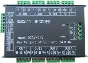 High Power 24 Channel RGB 3A/CH DMX512 Controller Led Decoder Dimmer 500Hz Flicker Free Smoother Dimming DMX Signal Indicator Flashes Function DC 5V-24V