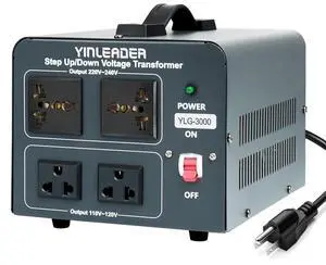 Yinleader Voltage Transformer 3000w Step Up/Down Power Transformer 110-120V to 220-240V/220-240V to 110-120V, with 2 US & 2 Universal Outlets, Circuit Breaker Protection (Grey)
