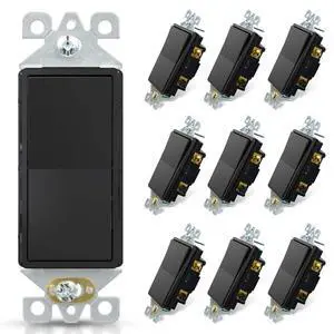 ELEGRP 3 Way Decorative Light Switch, 15Amp, 120/277 Volt, AC Decorator Rocker Paddle Wall Switch Replacement, Self-Grounding, Residential and Commercial Grade, UL Listed (10 Pack, Glossy Black)