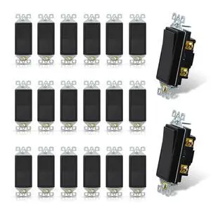ELEGRP Decorative Single Pole Switch, 15A 120/277V, Spade Rocker Switch, Grounding, Matte Black, Residential Grade, UL/CUL, Pack of 20
