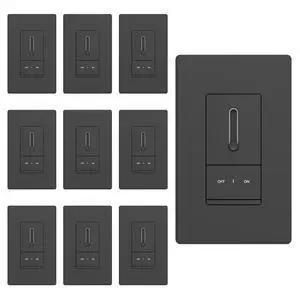 ELEGRP Dimmer Light Switch for 300W Dimmable LED/CFL Lights and 600W INC/HAL Bulbs, Single Pole/3-Way LED Slide Dimmer Light Switch, Wall Plate Included, UL Listed, 10 Pack, Matte Black