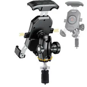 Motorcycle Fork Stem Phone Mount, Anti-Theft 1" Ball Phone Holder with Double Socket Arm Fits to RAM B Size Components 720° Rotation for 4.0"-7.0" Cellphones