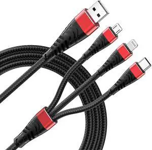 Multi Charging Cable 2Pack 6FT 3 in 1 Multi USB Charger Cable Nylon Braided Multiple USB Fast Charging Cord Adapter Data Sync Lightning and Type C Micro USB Port Connectors For All Cell Phones Tablets