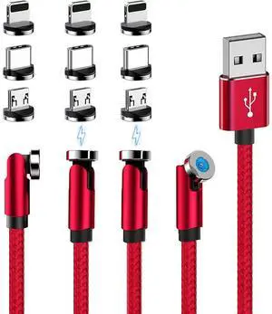 Magnetic Charging Cable [Red 4Pack 3+3+6+6ft] 540° Rotating 3 in 1 Magnetic Phone Charger USB C/Micro USB/for iPhone Cable LED Magnet Plugs Nylon Braided Charger Cord