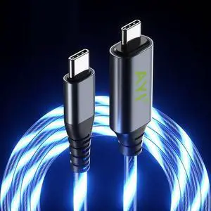 AYI USB Type C to Type C PD 60W Fast Charging Cable Phone Charger High Data Speed Visible Blue Cool LED Current Flowing for All USB C Device-Blue/39 Inches
