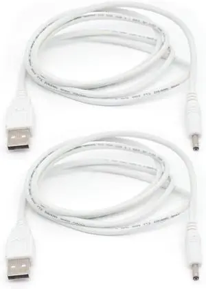 2PCS USB to 5V DC Power Cable White,4FT/1.2M USB to 3.5 x 1.35mm Plug Barrel Jack 5V DC Power Supply Cord Cable,20AWG USB DC 5V Charging Cable Adapter for Fans,Cartoon Watches,Speakers
