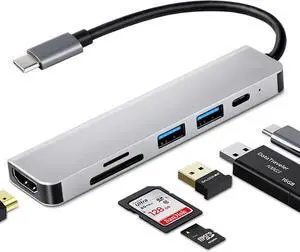 USB C Hub 6-in-1 with Type-C PD 100W Charging Port, NOVOO USB C Adapter to HDMI 4K, 2 x USB 3.0, SD/TF Card Reader, Aluminum Multiport Dongle USB-C Dock Compatible with MacBook Pro MacBook Air